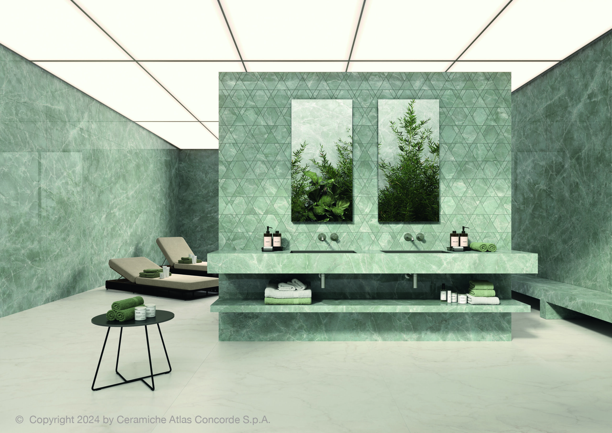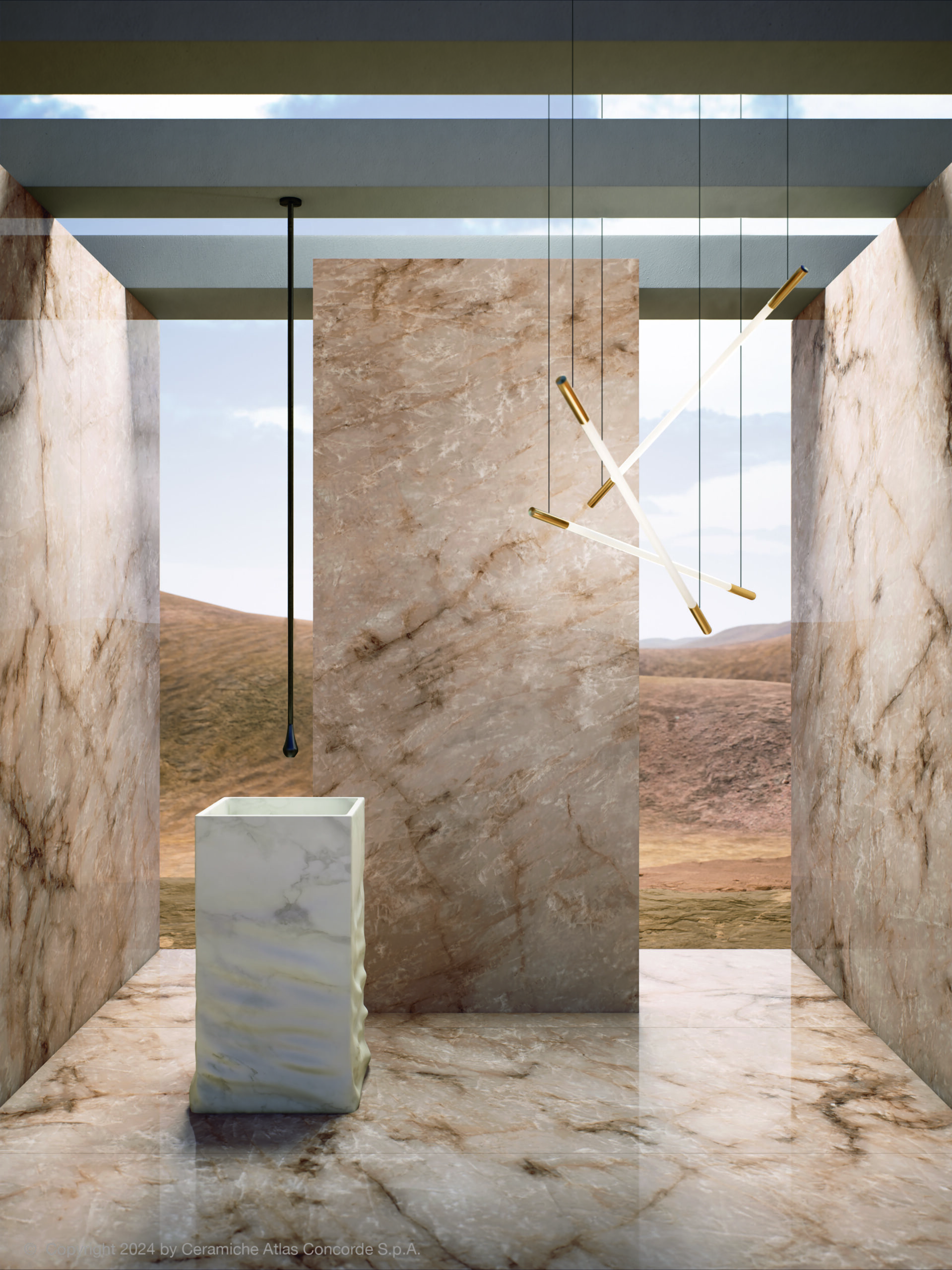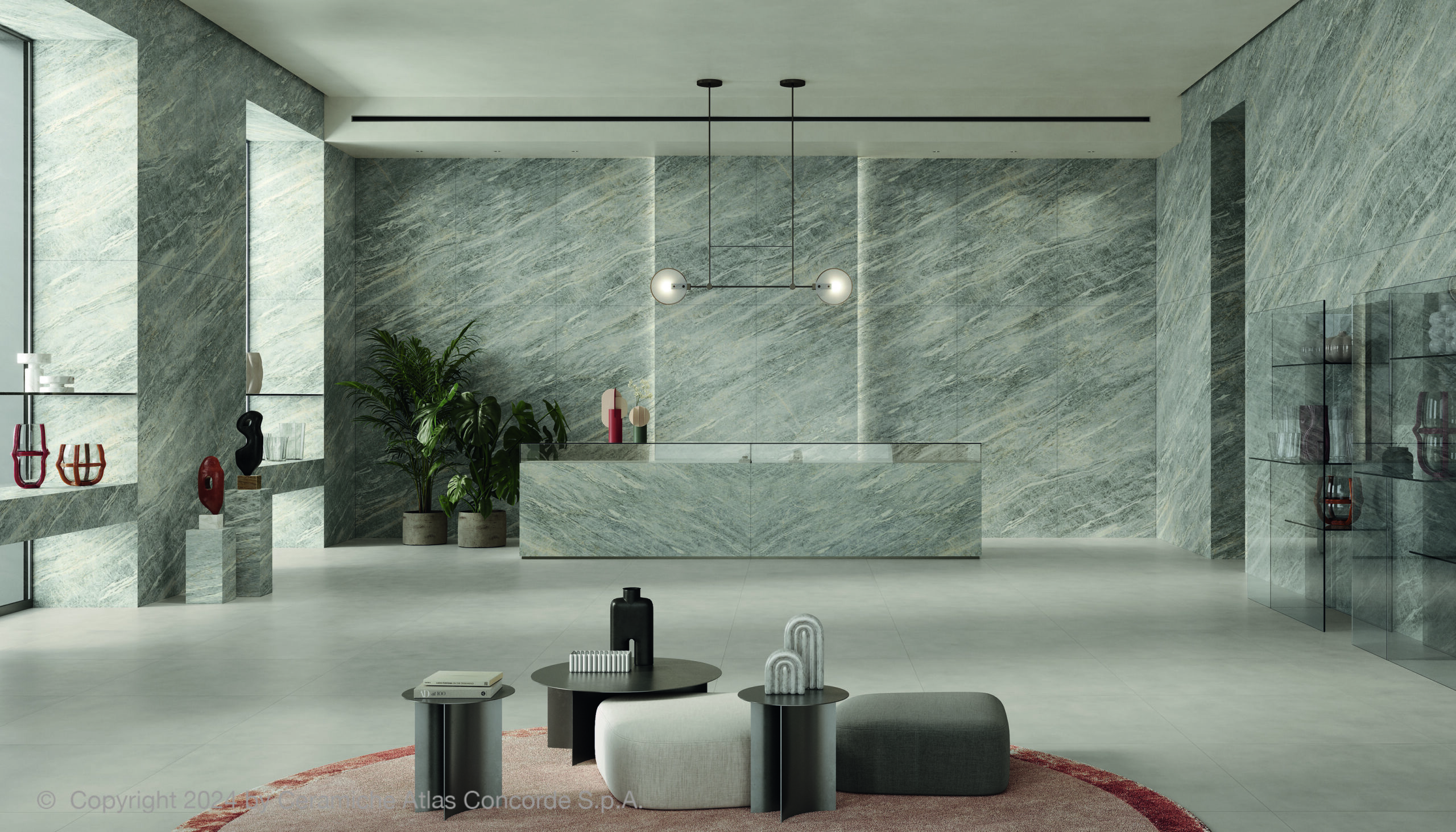 Marvel Diva fra Atlas Concorde er en elegant marmorserie med unikke åretegninger og farvespil, der giver rummet et eksklusivt og stilrent udtryk.