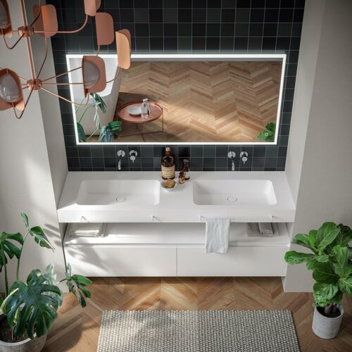 Giv dit badeværelse nyt liv og gør dine gæster fascineret af rummet med nye badeværelsesmøbler fra Flisebent. Vi tilbyder møbler til badeværelset i mange forskellige designs og prisklasser, så du kan få netop det badeværelse du drømmer om. Giv badeværelset et nyt look med nye badeværelsesmøbler Badeværelsesmøbler består typisk af et kabinet med et armatur og en håndvask samt et underskab eller skuffer. Ønsker du et blødt og varmt look på dit badeværelse, er møbler til badeværelset i træ look, den perfekte kombinationsmulighed. Hvis du ønsker et mere minimalistisk look i rummet, kan du vælge et kabinet med skab, hvor du kan gemme dine toiletsager væk. Det kan også være, at du er mere til det traditionelle look. Vi forhandler møbler til badeværelset i mange forskellige looks, så alle badeværelsesdrømme kan gå i opfyldelse. Fælles for alle vores badeværelsesmøbler er, at de tåler fugt. Beklædningen på møblerne til badeværelset er specielt lavet, så de kan klare de altid skiftende temperaturer og mængder af fugt. Find de rette badeværelsesmøbler uden at gå på kompromis med stil eller udseende Drømmer du om at få en ny start på dagen med et nyt og lækkert badmiljø, som giver dig lyst til at stå…